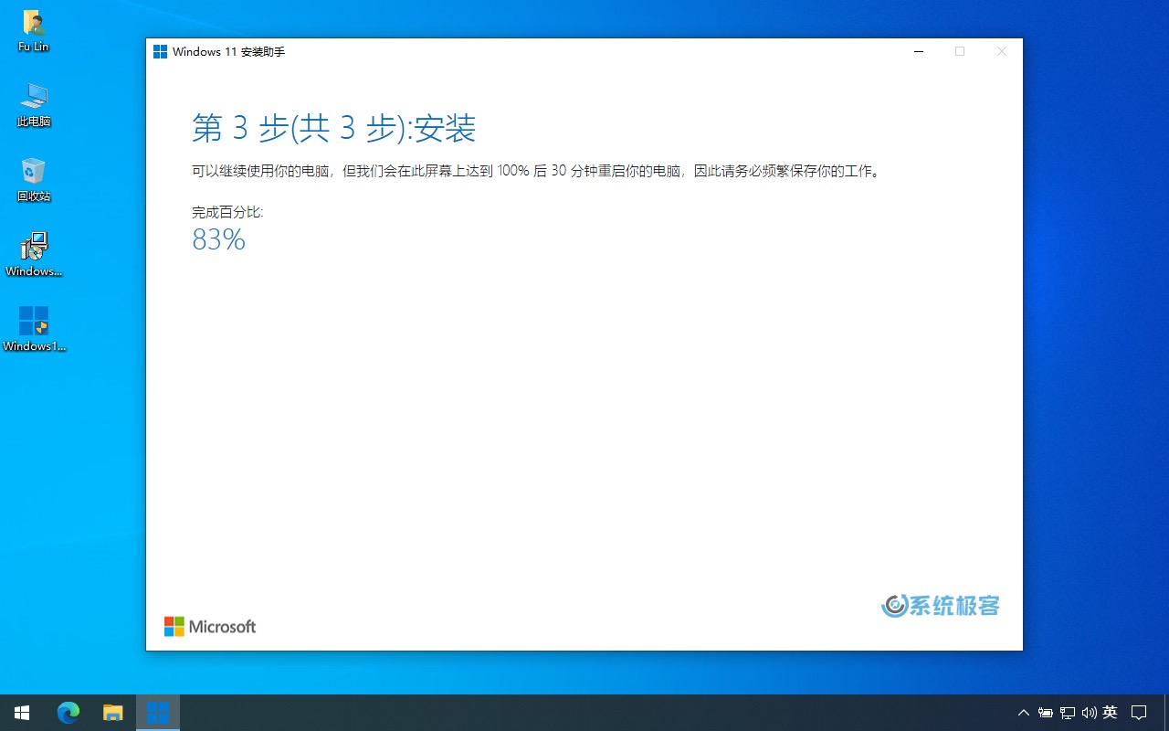 安装助手会自动下载 Windows 11 25H2 的升级文件,并自动安装到你的电脑上。所需时间取决于你的电脑性能和网速。