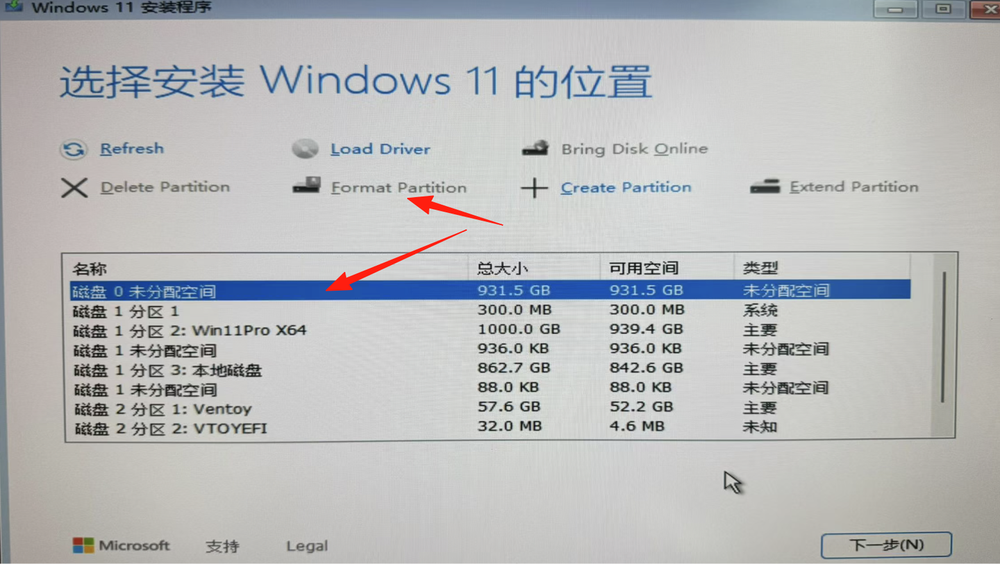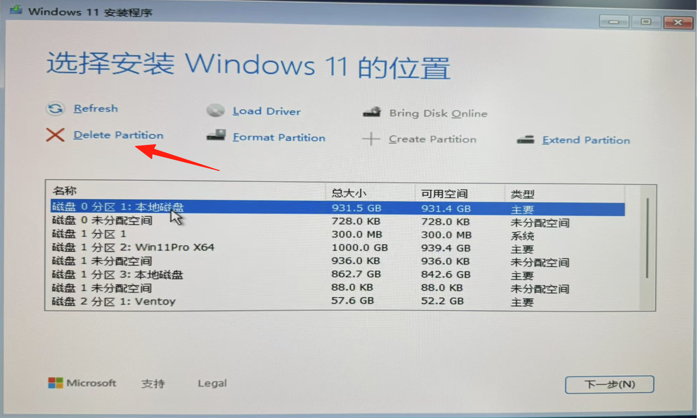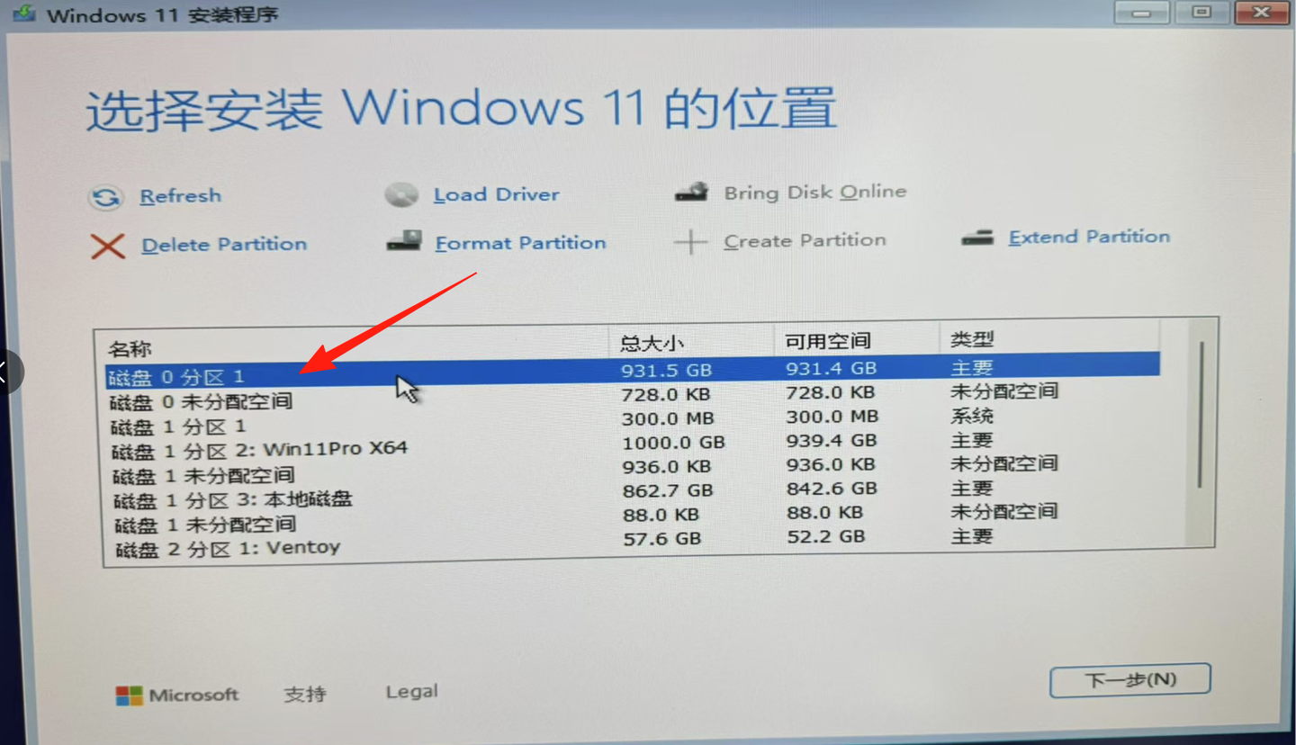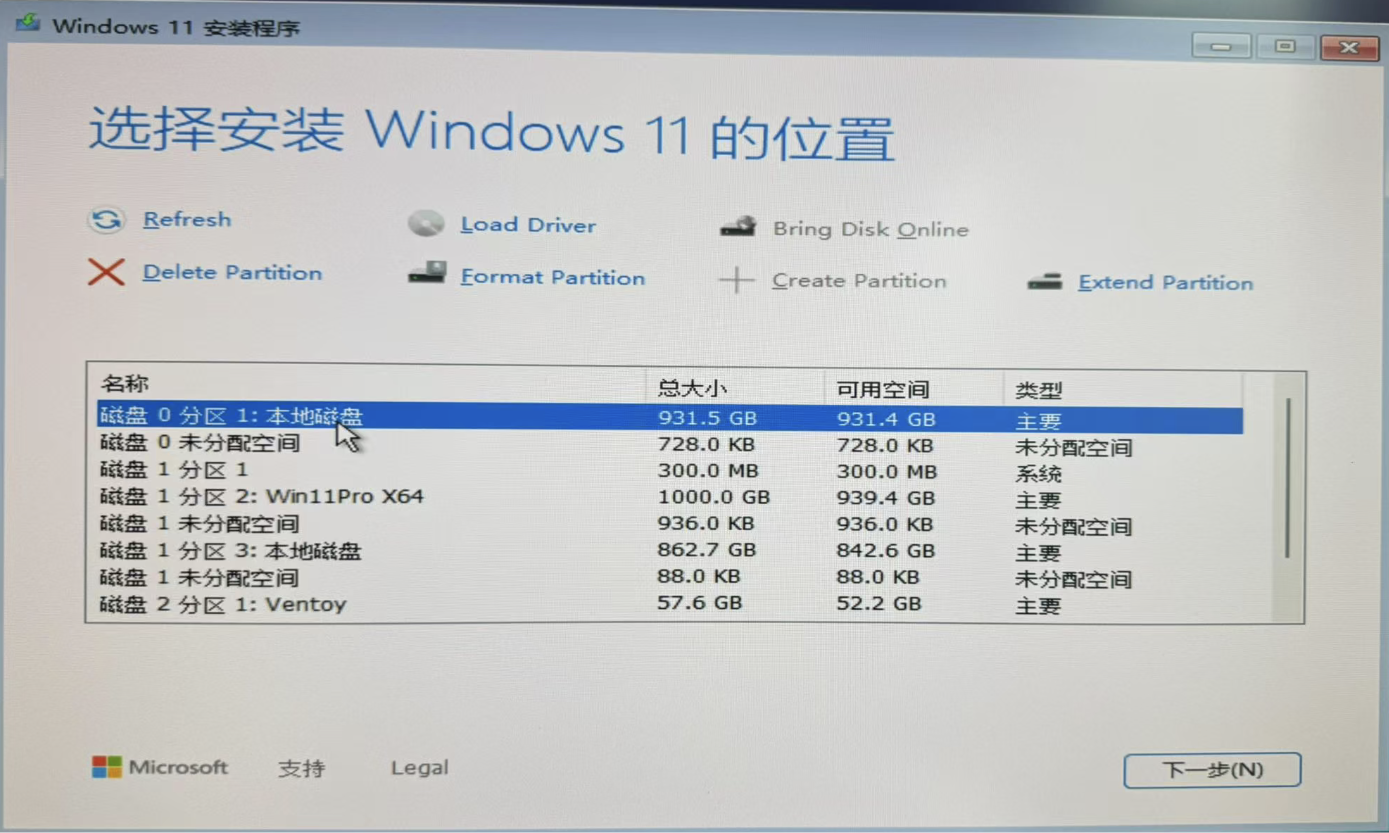 - 磁盘 0 :我的那个 1 TB SDD,就1个磁盘分区,即本次演示的目标安装硬盘。