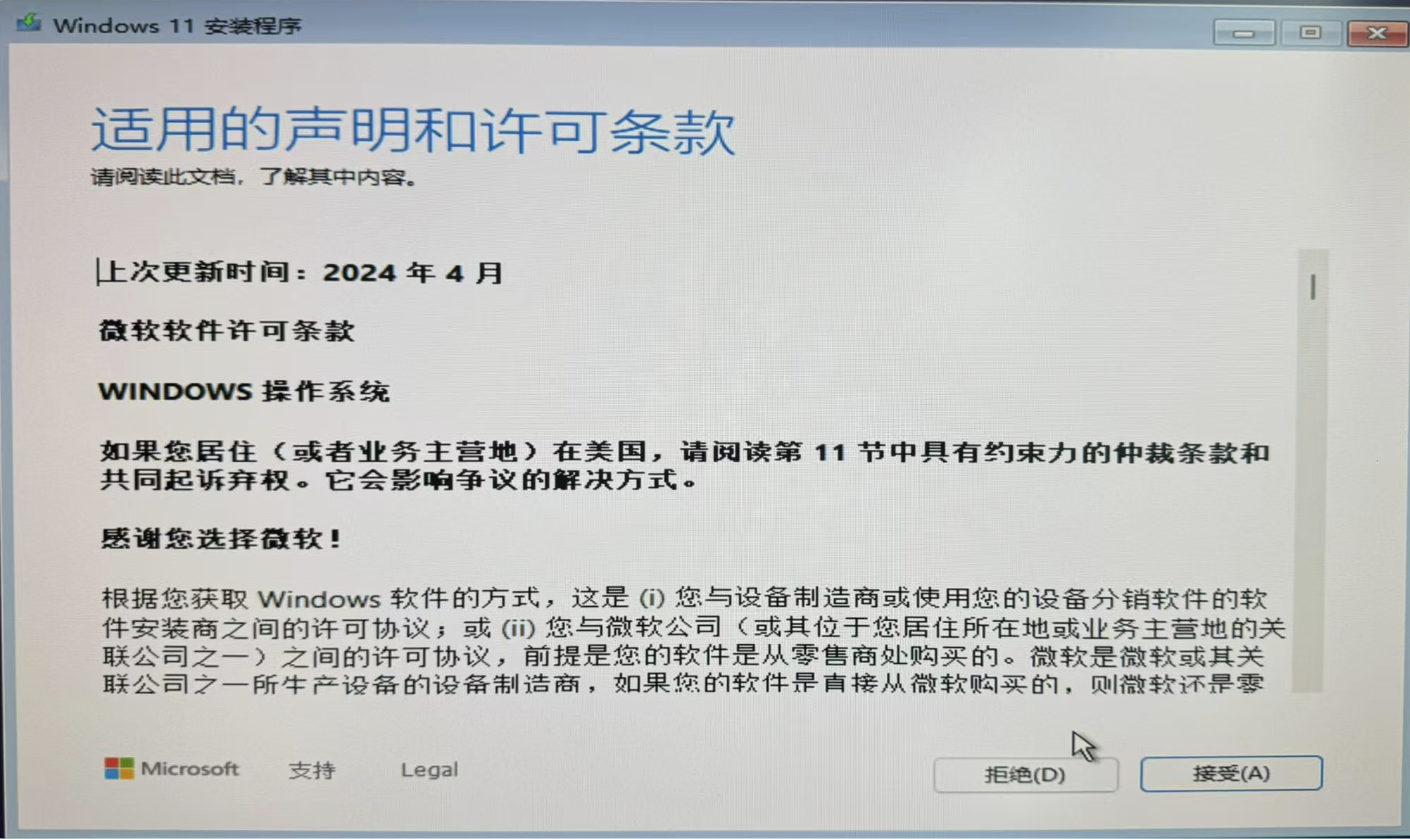 在安装助手界面中,阅读许可条款后,点击「接受并安装」。